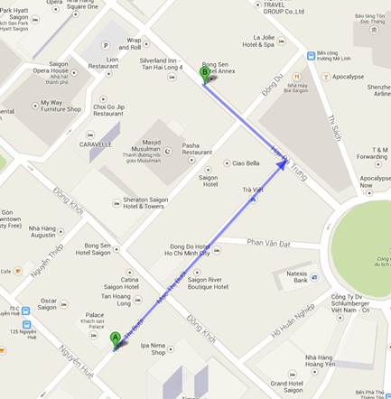 Direction From Conferrence Venue (Palace Hotel Saigon : A) To Accommodation (Bong Sen Hotel Annex: B)